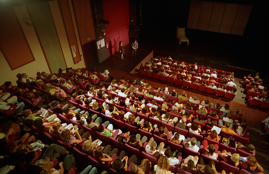 La grande salle : d’une capacité de 270 places, cette belle salle gradinée ouvre sur un plateau de 14 x 11m. S’y concentre tout l’équipement technique que l’on peut attendre d’une salle de spectacle telle que le Théâtre du Grand Marché.